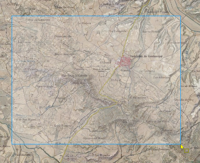 3. Barra de herramientas3.2 Ver 3.2.4 Zoom caja El botón Zoom caja permite seleccionar una zona en la vista y aproximarnos a ella. Para ello, se hace click sobre la vista y se arrastra el puntero del ratón, definiendo la ventana a la que hacer zoom: