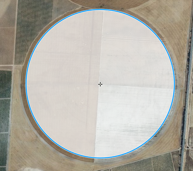 permite medir el área del círculo definido por un punto (centro del círculo), en el que se hizo click inicialmente, y el punto al que se ha arrastrado el puntero del ratón. Al liberar el puntero, se fija la figura y finaliza la medición.