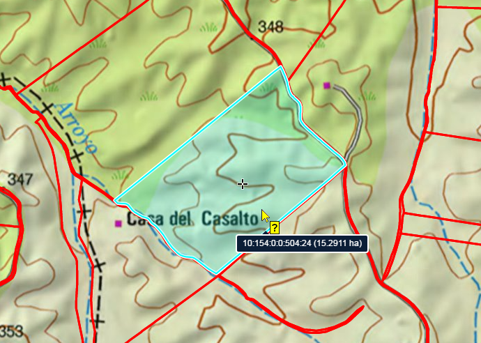 Una vez seleccionada la consulta Parcela, situando el puntero activo sobre cualquier elemento de la capa PARCELA, obtendremos información dinámica sobre la misma:
